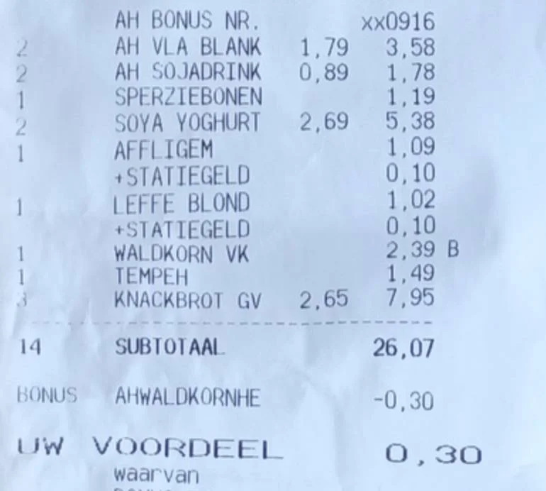 Welk gerecht hebben jullie gemaakt op basis van dit bonnetje?